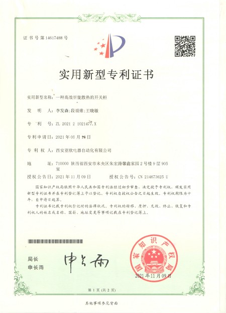 - 關(guān)于我們 - 資質(zhì)榮譽(yù) - 一種高效智能散熱開(kāi)關(guān)柜專利