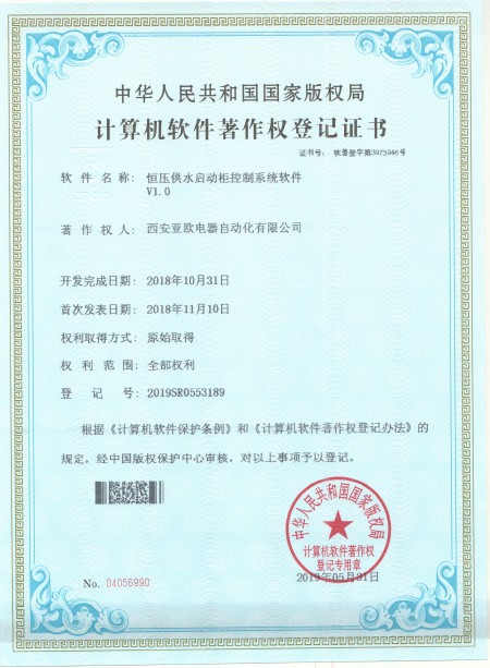 - 關于我們 - 資質榮譽 - 恒壓供水啟動柜控制系統(tǒng)軟件