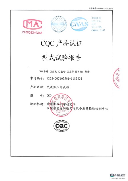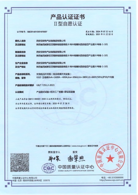 - 關(guān)于我們 - 資質(zhì)榮譽(yù) - 交流低壓開關(guān)柜(GGD)資質(zhì)
